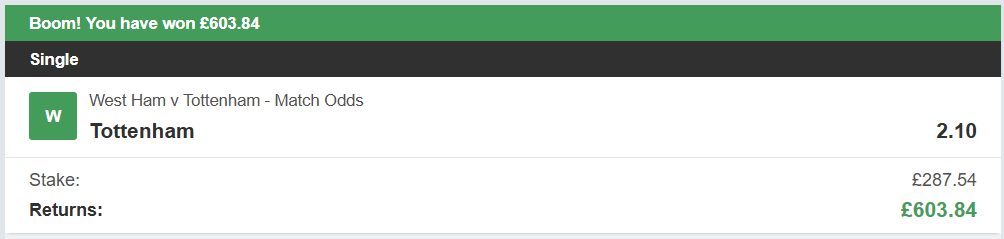 This bet saw us bank £251.48 from a STARTING £10 bet.